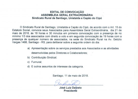 CONVOCAÇÃO PARA ASSEMBLEIA GERAL EXTRAORDINÁRIA