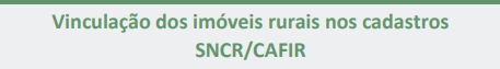 A vinculação representa o primeiro passo para a unificação dos cadastros de imóveis rurais SNCR*/Incra e Cafir*/RFB.